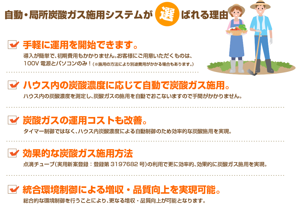 「環境測定」+「自動・局所炭酸ガス施用」システムのご提案・ご提供を行っております。