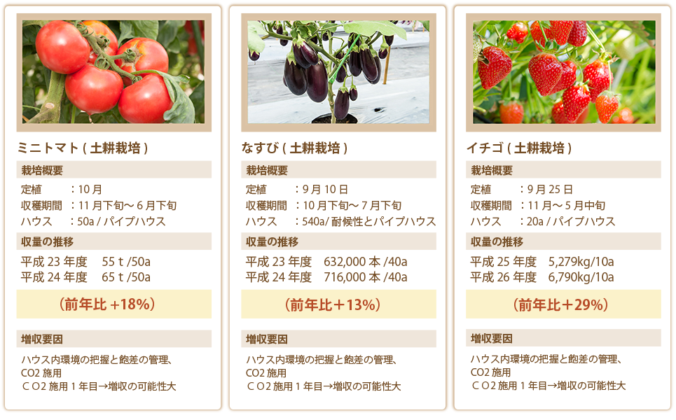利用を効果的に行うことで、作物の育成増、収量増を実現する、